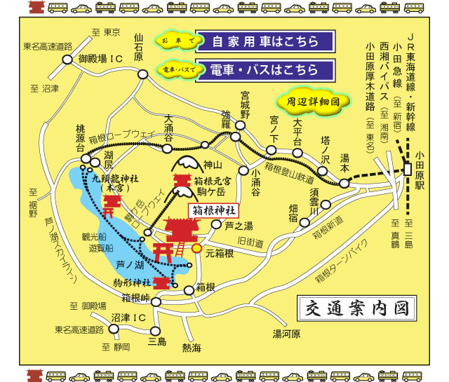 作为关东的总镇守神,箱根供奉世世代代的武将,并对交通安全,心想事成,开运劈邪灵验噢